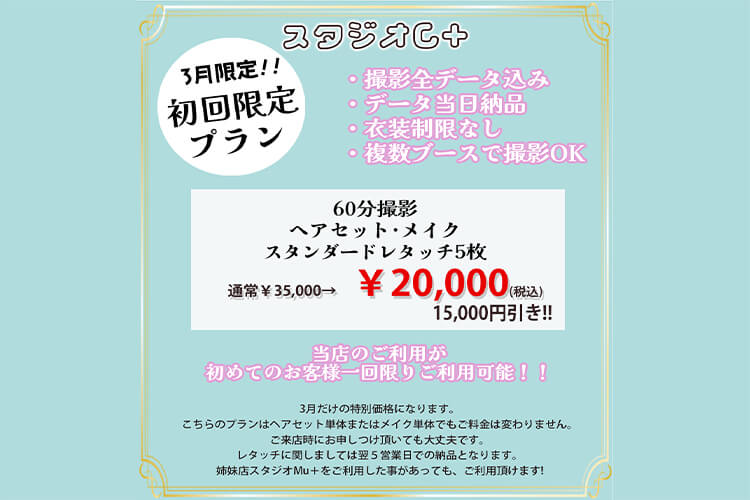 階段で2階までお上がりください電話番号 045-341-3983 メールアドレス info@studio-cplus.info 営業時間 10:00〜19:30 最終撮影予約受付 18:30 定休日 日曜日 最寄駅 市営地下鉄ブルーライン「阪東橋駅3A出口」から徒歩3分 京急線「黄金町駅」から徒歩5分 JR京浜東北線「関内駅北口」から徒歩15分 駐車場 近隣のコインパーキングをご利用ください。